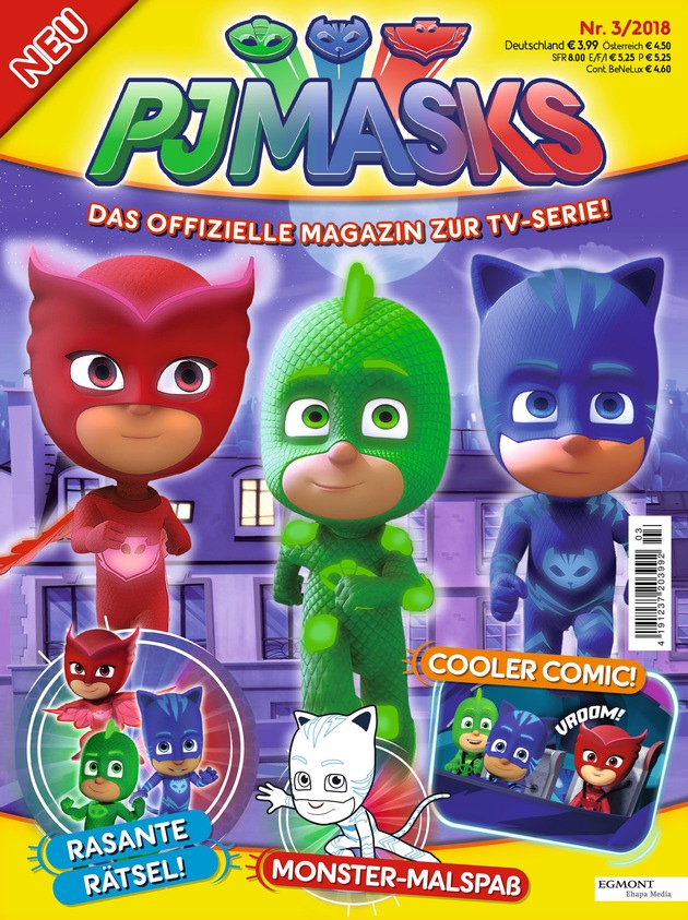Ab dem 29. Juni schlüpfen die PJ Masks bei Egmont Ehapa Media in ihr eigenes Kindermagazin. Die sehr erfolgreiche Fernsehserie im Disney Channel läuft bereits in der zweiten Staffel und ist im Lizenzmarkengeschäft derzeit einer der größten Aufsteiger.