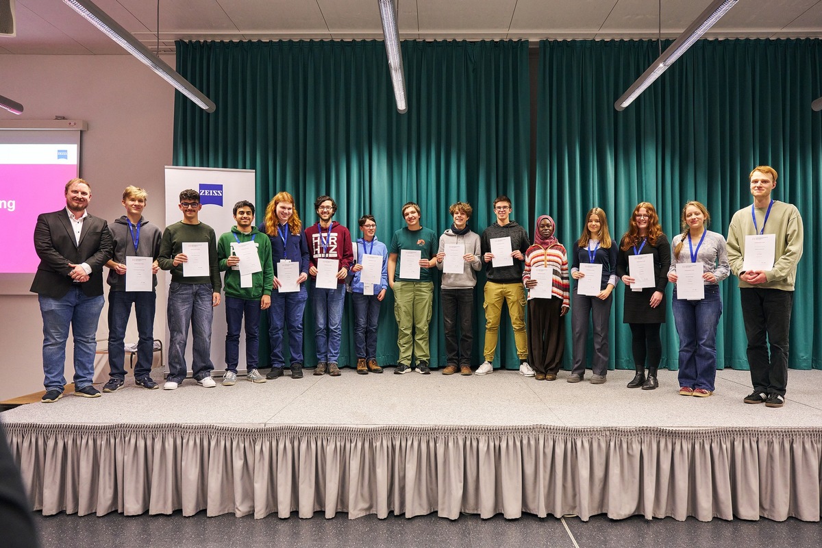 Nach zwei Hausaufgabenrunden stehen die besten Schülerinnen und Schüler fest, die sich an den ersten beiden Runden im Bundeswettbewerb Mathematik 2025 beteiligt haben. Aus Berlin nahmen insgesamt 43 Jugendliche an der zweiten Runde teil. Dabei erreichten Kian Abdu-Cook (Herder-Gymnasium), Franciszek Ceremuga (Nelson-Mandela-Schule), Poyraz Coskun, Jakob von Kapp-herr (beide Käthe-Kollwitz-Gymnasium), Cornelius Ley (Katholische Schule Liebfrauen), Theo Ruby (Bilinguales Gymnasium Phorms) sowie Dmitry Dollmeier, Oskar Schories und Jonathan Seehafer (alle Heinrich-Hertz-Gymnasium) einen ersten Preis. Außerdem gab es fünf zweite und neun dritte Preise. Die Mathetalente wurden gestern bei der Carl Zeiss AG im Rahmen einer feierlichen Preisverleihung in Jena gemeinsam mit Preisträgern aus weiteren Bundesländern geehrt.