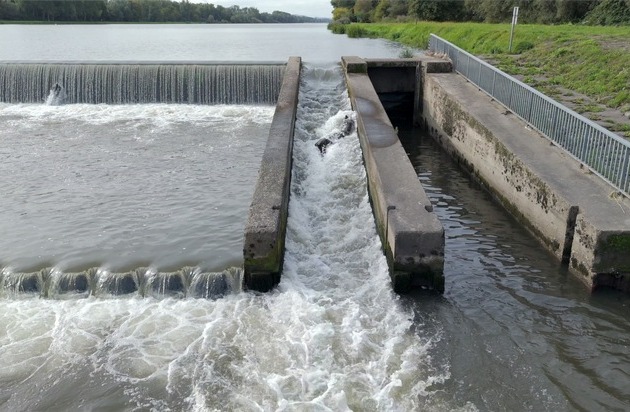 Weir on the Rhine. Photo: Christophe Gateau / Texte complémentaire par ots et sur www.presseportal.de/en/nr/177283 / L'utilisation de cette image à des fins éditoriales est autorisée et gratuite, pourvu que toutes les conditions d'utilisation soient respectées. La publication doit inclure le crédit de l'image.