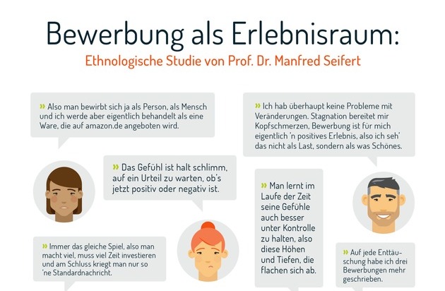 Den Interviews ging eine quantitative, im Sommer und Herbst 2016 von softgarden durchgeführte Online-Umfrage voraus, an der rund 3.500 Bewerberinnen und Bewerber teilnahmen. Für 84,3% der Befragten war die Bewerbung mit "starken Gefühlen" verbunden. Die Teilnehmer verglichen die Bewerbung als Lebenssituation mit Partnerschaft und Partnersuche oder auch mit Prüfungsszenarien. Studienfazit zum Download