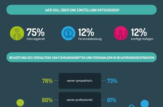 Entsprechend wünschen sich 90 Prozent der Bewerber "unbedingt mit ihrer künftigen Führungskraft" zu sprechen, für die Personalabteilung sind es 52 Prozent. "Die Umfrage zeigt: Der Wettbewerb um die besten Köpfe wird maßgeblich von den Führungskräften mitentschieden, die mit Kandidaten in Kontakt kommen", sagt Dominik Faber, Geschäftsführer der softgarden e-recruiting GmbH.