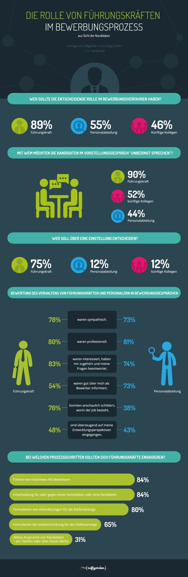 Bewerbungsverfahren: Führungskräfte machen den Unterschied / Aktuelle softgarden-Umfrage zu Führungskräften im Bewerbungsprozess.