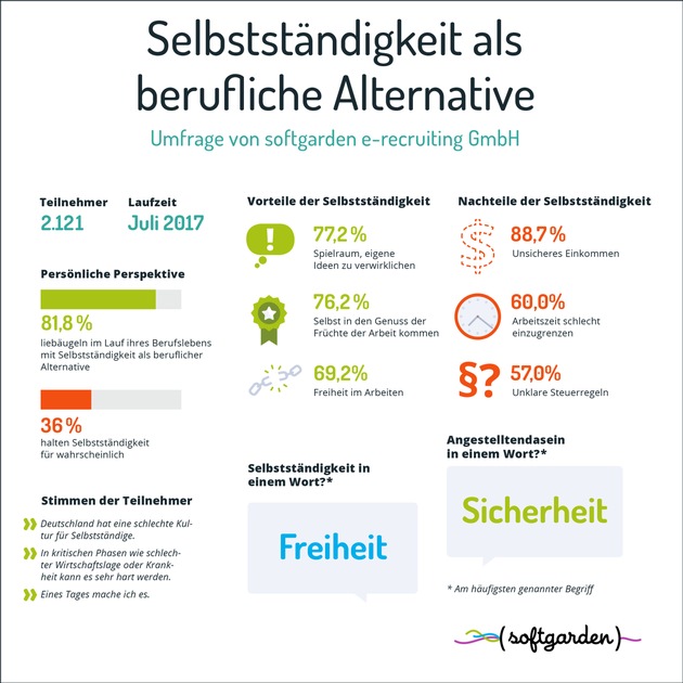 "Eines Tages mache ich es": Gemeinsame Umfrage von softgarden und dem Personalmagazin zeigt Blick von Bewerbern auf Selbstständigkeit als berufliche Alternative