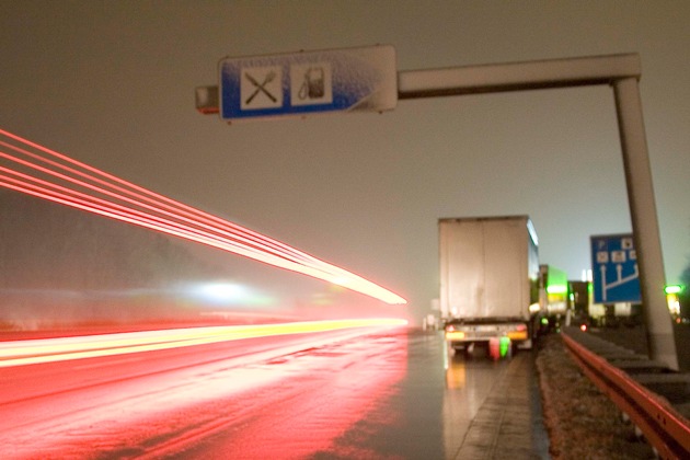 Die Not ist so groß, dass seit gut zwei Jahren sogar einfach auf den Standstreifen der Autobahn (u.a. Ballungszentren München, Nürnberg, Heilbronn, Frankfurt, Hannover, Ruhrgebiet und Hamburg) der Lkw abgestellt wird. Dort "vagabundieren" die Fahrer, von höllischem Lärm umgeben, abgeschnitten von Toiletten, Waschmöglichkeiten und Kommunikation.
