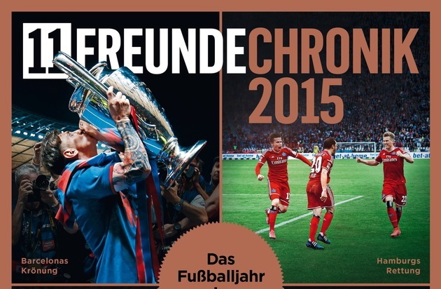 Zum zweiten Mal in Folge präsentiert 11FREUNDE ein großes Jahressonderheft. Ab dem 1. Dezember 2015 ist die "11FREUNDE Chronik 2015 - ein Fußballjahr in Bildern" im Handel erhältlich. In Großformat und Hochglanz zeigt das Magazin für Fußballkultur auf 132 Seiten die besten, spannendsten und aufregendsten Geschichten und Fotos aus dem Fußballjahr 2015.