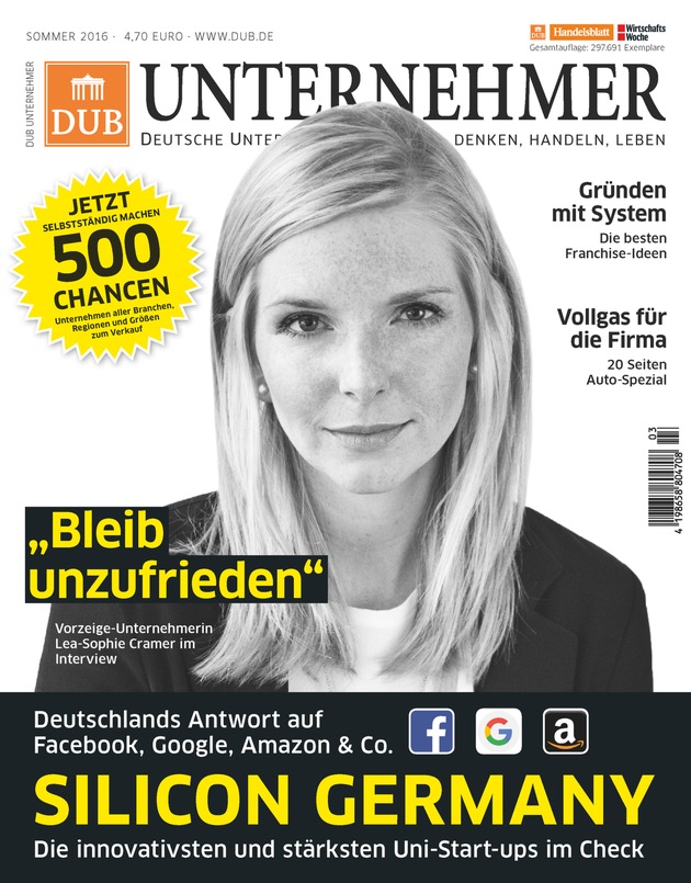Die Sommerausgabe des DUB UNTERNEHMER-Magazins bricht Rekorde. Das Heft erscheint erstmals mit 176 Seiten und einer Auflage von 297.691 Exemplaren am Kiosk sowie als Supplement in Wirtschaftswoche und Handelsblatt. Die Airportauflage verdoppelte sich von 30.000 auf 60.000 Hefte.