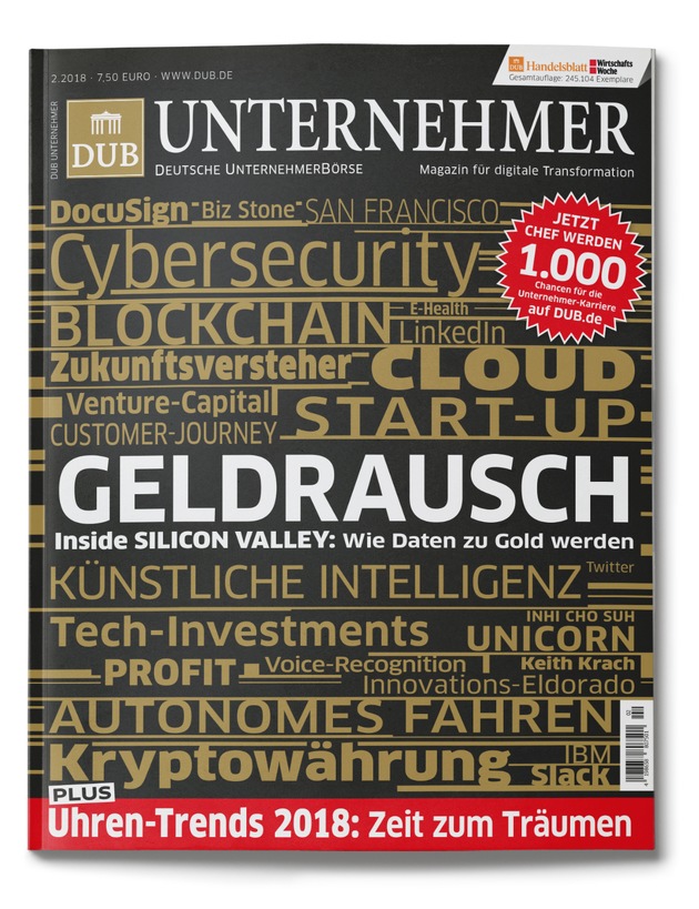 Die Ausgabe 2.2018 des DUB UNTERNEHMER-Magazins ist ab 26. April für 7,50 Euro am Kiosk erhältlich.