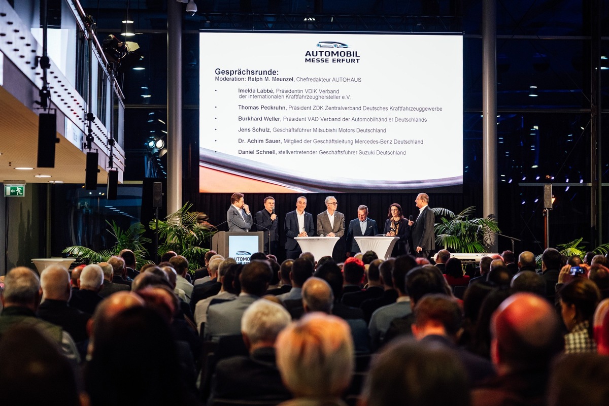 In der anschließenden Podiumsrunde kamen Imelda Labbé, Präsidentin des VDIK – Verband der internationalen Kraftfahrzeughersteller e.V., Thomas Peckruhn, Präsident des ZDK – Zentralverband Deutsches Kraftfahrzeuggewerbe, Burkhard Weller, Präsident des VAD – Verband der Automobilhändler Deutschlands, Jens Schulz, Geschäftsführer bei Mitsubishi Motors Deutschland, Dr. Achim Sauer, Mitglied der Geschäftsleitung Mercedes-Benz Deutschland, und Daniel Schnell, Stellvertretender Geschäftsführer bei Suzuki Deutschland, ins Gespräch.