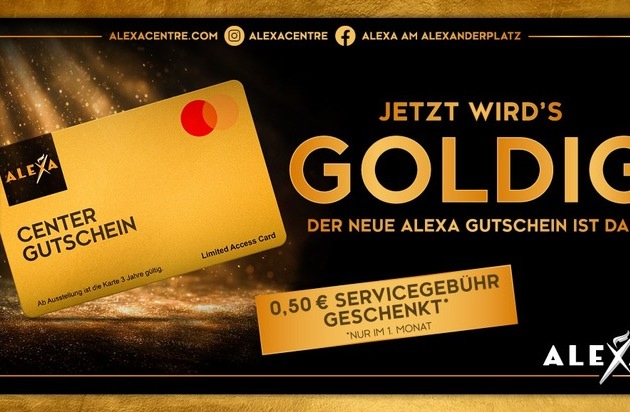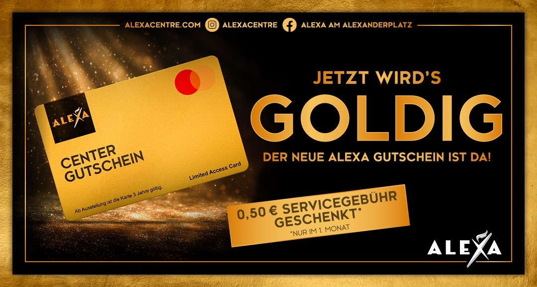 Zum Start in den Frühling begrüßt das ALEXA seine Gäste im neuen Glanz: Der Eingangsbereich am Haupteingang (Alexanderplatz/Grunerstraße) punktet mit neuen Sitzbänken und einer frisch gestalteten Kundeninformation - passend zum ALEXA-Design im Stil der 1920er-Jahre. Zugleich führt das beliebte Shoppingcenter am Alexanderplatz seinen neuen Centergutschein ein. Die neuen Karten glänzen nicht nur im edlen Gold-Design, sondern bieten allen Shoppingfans und Geschenke-Jägern ab sofort noch mehr Flexibilität, Sicherheit und Komfort: Durch Umstellung auf Mastercard funktioniert der Gutschein wie eine Bankkarte. Die Karte kann individuell mit Beträgen zwischen 10 und 150 Euro aufgeladen werden und auch das Einlösen ist komfortabel – einfach an der Kasse der teilnehmenden Shops vorzeigen und los geht das Shoppingvergnügen. Dank des QR-Codes ist auch jederzeit ein schneller Guthaben-Check möglich.