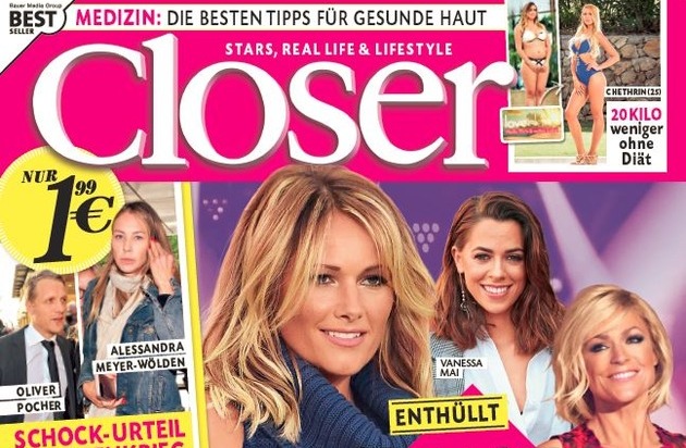 Der vollständige Bericht erscheint in der aktuellen Ausgabe von Closer (Nr. 38/2017, EVT 13.09.). Auszüge sind bei Nennung der Quelle Closer zur Veröffentlichung frei. Für Rückfragen wenden Sie sich bitte an die Redaktion Closer, David Holscher, Telefon: 040/3019-2561.