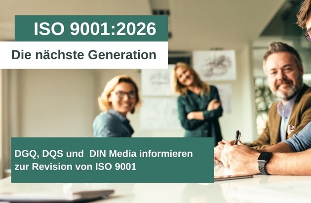Wichtige Änderungen im Qualitätsmanagement: Veranstaltungsreihe von DIN Media, DGQ und DQS zur ISO 9001:2026 startet im Sommer 2026 - Anmeldungen mit Frühbucherrabatt sind ab sofort möglich.