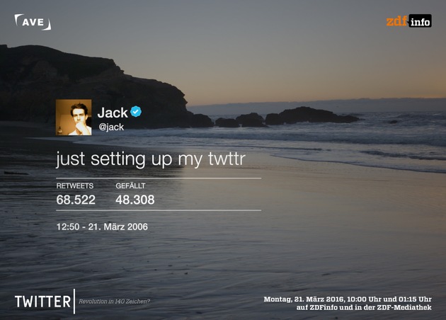 Die Dokumentation "Twitter - Revolution in 140 Zeichen?" sendet ZDFinfo erneut am Freitag, 25. März 2016, 16.45 Uhr, und am Samstag, 26. März 2016, 7.00 Uhr.