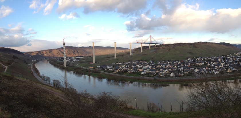 Die Hochmoselbrücke bei Zeltingen-Rachtig in Rheinland-Pfalz ist ein Brückenschlag mit Hindernissen - imposantes Bauwerk und gewaltiger Zankapfel zugleich: 1,7 Kilometer lang und 150 Meter hoch ist die größte Brücke, die derzeit in Europa gebaut wird - und Teil eines riesigen Bundesstraßenausbaus, auch "Hochmoselübergang" genannt.