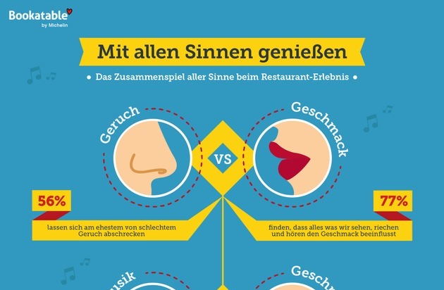 Bookatable-Umfrage: Nicht nur die Geschmacksnerven, sondern auch alle anderen Sinne wie Geruch und Gehör haben Einfluss auf ein Restauranterlebnis
