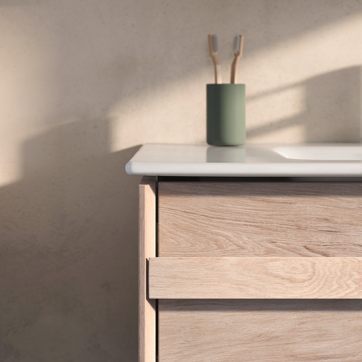 - Natürliche Wärme fürs Bad: Eichenholz schafft eine ruhige, einladende Atmosphäre mit wohnlichem Charme