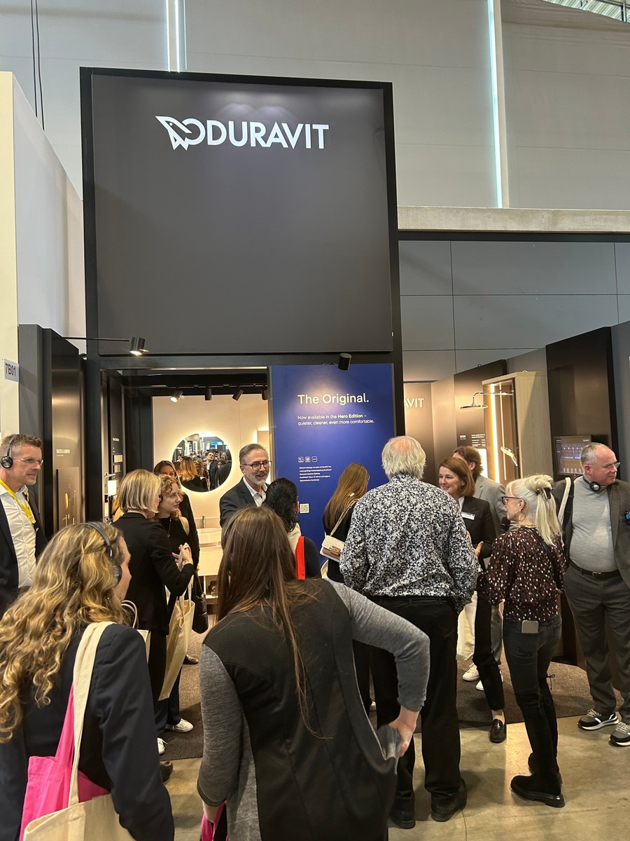 Der kompakte Messestand erwies sich erneut als strategisch wertvoller Standort. Duravit war zudem Teil eines geführten Messerundgangs für Branchenvertreter, was die Sichtbarkeit im Projektumfeld weiter erhöhte. Das Interesse der Fachbesucher fiel spürbar höher aus als bei der Premiere 2024.