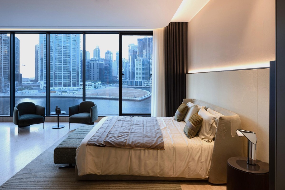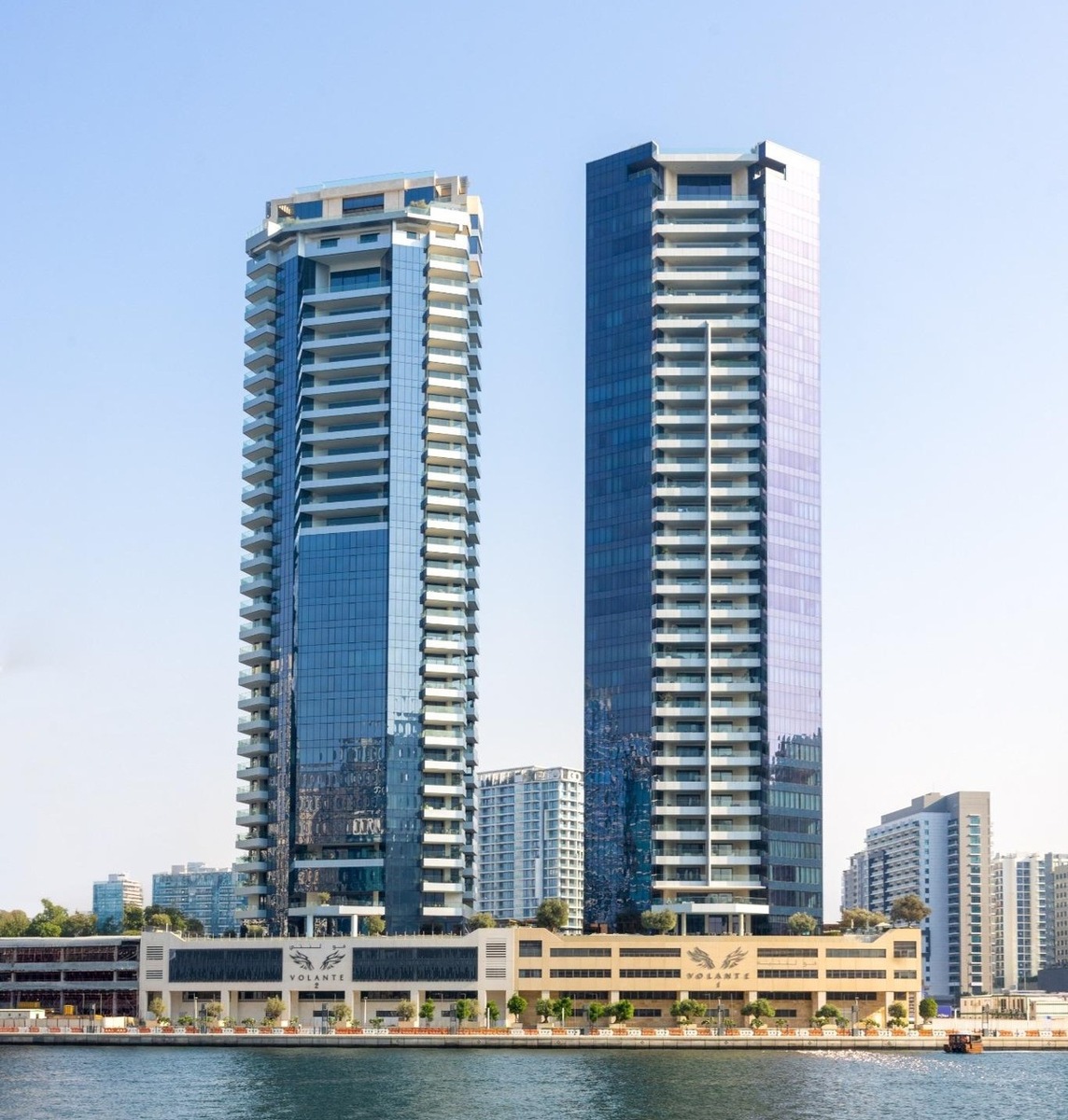 Inmitten der Skyline von Dubai setzen die Volante Towers im Business Bay District eine markante, vertikale Adresse an der Uferkante des Kanals. Großflächige Verglasungen und gestaffelte Balkone strukturieren die Fassaden und öffnen die Wohnungen zur Stadtkulisse.