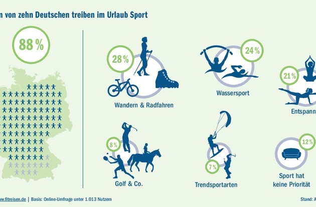 Fit Reisen ist Deutschlands führender Veranstalter für Wellness- und Gesundheitsreisen und bietet über 9.500 Arrangements in 1.100 Hotels und 50 Ländern weltweit an. Die Umfrage wurde im Rahmen des von Fit Reisen regelmäßig durchgeführten "Trendbarometers Gesunder Urlaub" erhoben.