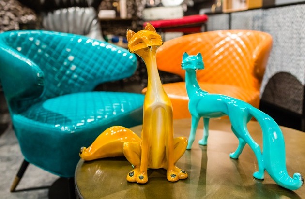 Ein lächelndes Krokodil hält ein Tablett und wird zum charmanten Beistelltisch. Der klassische Schalenstuhl "Yeti" wird mit einem Bezug aus buntem Fake Fur zum Hingucker am Esstisch. Gesteppte Cocktailsessel in knatschigem Gelb und Türkis peppen die Sitzecke auf. Und die Kollektion "Rockstar selected by Carmen und Robert Geiss" bietet Glitzersteinchen auf plüschigen Liegen und Totenköpfe als Couchtische. Für die richtige Portion dekorativer Würze stehen die Trendmacher des Möbelunternehmens Kare seit jetzt 35 Jahren. Auf der Ambiente 2016 zeigen die Kreativen 20 neue Wohnwelten, die den derzeit angesagten schlichten Wohnstil aufpeppen. Rund 1.000 Neuheiten zeigt das heute in 46 Ländern erfolgreiche Möbelunternehmen auf seinem spektakulär inszenierten Stand getreu seiner Markenphilosophie "Spaß am Wohnen".