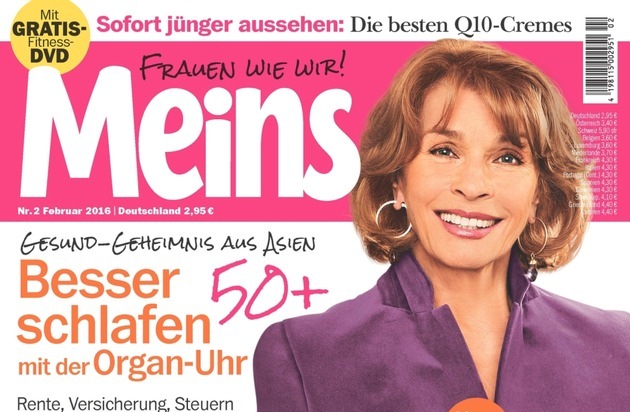 Im Auftrag der Zeitschrift "Meins" befragte TNS Emnid 478 Frauen und Männer 50plus. Der vollständige Bericht sowie das Interview mit Senta Berger erscheinen in der neuen Meins (2/2016, EVT 6. Januar 2016). Auszüge sind bei Nennung der Quelle Meins zur Veröffentlichung frei.