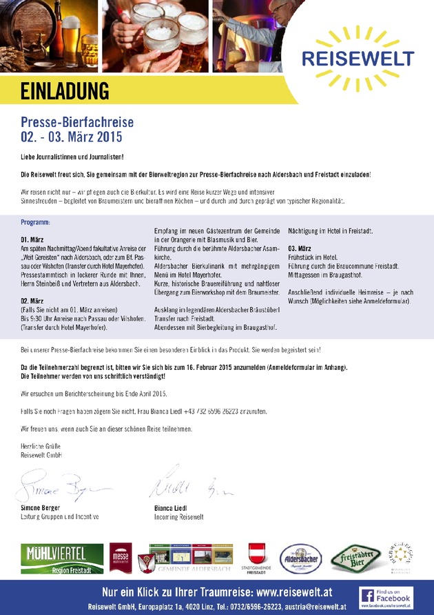 Einladung zur Presse-Bierfachreise vom 1. bis 3. März 2015