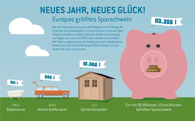Neues Jahr, neues Glück! Unter diesem Slogan steht am morgigen Freitag die erste Ziehung der Lotterie Eurojackpot im neuen Jahr 2017. Und es stellt sich die Frage: Wer knackt das Sparschwein mit den 90 Millionen Euro in der Gewinnklasse 1?