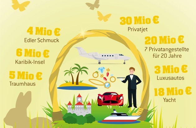 Dazu Axel Weber, Pressesprecher der Lotterie: "Wer träumt nicht davon mit seinen Liebsten in der Familie zu Ostern nach den Ostereiern zu suchen und dabei 86 Millionen Euro als `Schatz´ verstecken zu können?"