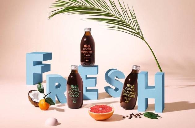 "ffeel fresh" durch die erfrischende und belebende Kombination aus Cold-Brew-Coffee mit den besonderen fruchtigen Aromen der Superfruits: Mit Grapefruit Yuzu gilt es die milde Säure der Zitrusfrüchte in Kombination mit aromatisch-milder Kaffeenote zu schmecken. Calamansi Tangerine entführt in eine Geschmackswelt aus aromatisch-mildem Kaffee und lieblich-frischen Früchten. Coconut Mango ist der Genuss der Harmonie, die durch die Kombination aus Mango, feinherbem Kaffee und köstlichem Kokosaroma entsteht.