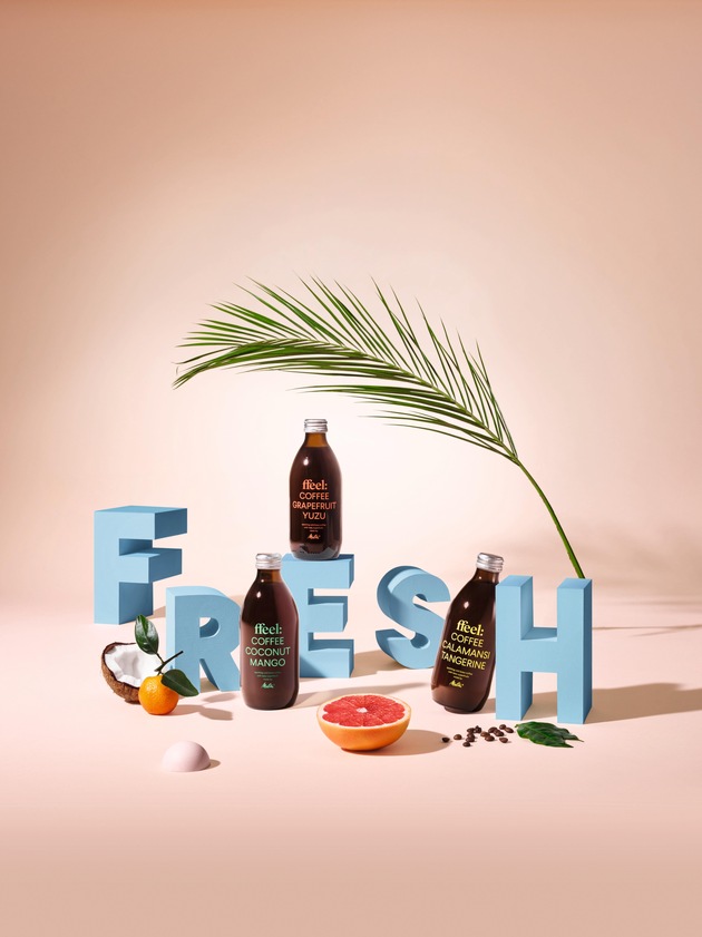 "ffeel fresh" durch die erfrischende und belebende Kombination aus Cold-Brew-Coffee mit den besonderen fruchtigen Aromen der Superfruits: Mit Grapefruit Yuzu gilt es die milde Säure der Zitrusfrüchte in Kombination mit aromatisch-milder Kaffeenote zu schmecken. Calamansi Tangerine entführt in eine Geschmackswelt aus aromatisch-mildem Kaffee und lieblich-frischen Früchten. Coconut Mango ist der Genuss der Harmonie, die durch die Kombination aus Mango, feinherbem Kaffee und köstlichem Kokosaroma entsteht.