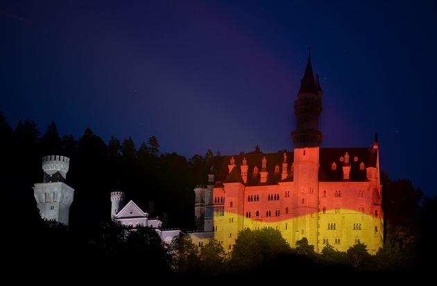 Schloss Neuschwanstein erstrahlt in den Farben der deutschen Flagge - Website www.welcomedahoam.com jetzt online