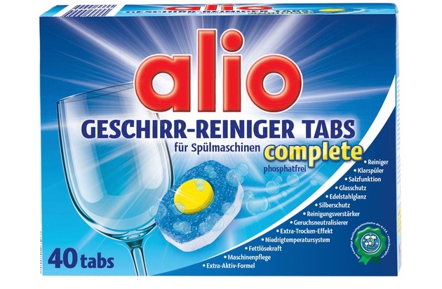 Im Vergleich von 14 Geschirrspül-Tabs liegt Alio Complete mit einer Gesamtnote von 2,3 (gut) fast gleichauf mit dem Testsieger, wobei es beim Preis eindeutig die Nase vorn hat: Mit 7 Cent pro Spülgang kosten die Tabs von ALDI SÜD knapp dreimal weniger als das Premiumprodukt, das mit 20 Cent pro Spülgang zu Buche schlägt.