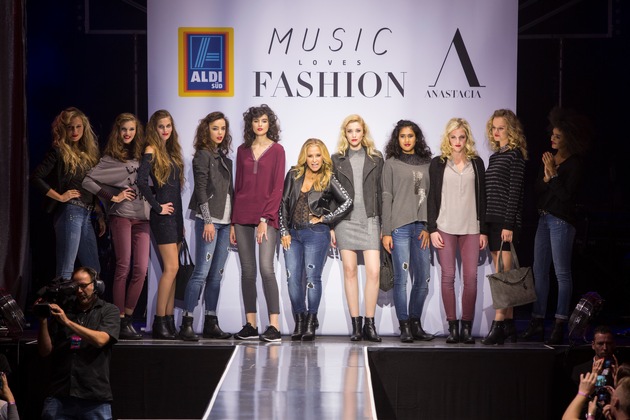 Mit einem spektakulären Live-Event unter dem Motto "Music Loves Fashion" hat US-Star Anastacia am Donnerstag, 7. September, im Kölner E-Werk ihre für ALDI SÜD entworfene Kollektion vorgestellt. Die 800 Gäste bekamen die kompletten Outfits schon eine Woche vor dem Verkaufsstart exklusiv von zehn Models und der Sängerin selbst präsentiert. Nach der Fashion-Show wurde der Catwalk zur Bühne und Anastacia rockte gemeinsam mit ihren Fans das E-Werk. Ab dem 14. September bietet ALDI SÜD die Kollektion im Glam-Rock-Style an, die nach Anastacias Wünschen und Vorlieben kreiert wurde.
