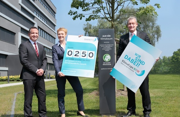 Die Unternehmensgruppe ALDI SÜD wurde als erster Lebensmittelhändler als "Schrittmacher" in die KlimaExpo.NRW aufgenommen. Die Klima Expo.NRW ist eine Initiative der Landesregierung, die vorbildliches Engagement für den Klimaschutz auszeichnet. Am Montag, 14. Mai 2018, überreichte Dr. Heinrich Dornbusch, Geschäftsführer der KlimaExpo.NRW, die offizielle Urkunde an Dr. Julia Adou, Director Corporate Responsibility bei ALDI SÜD. "Wir freuen uns, die Unternehmensgruppe ALDI SÜD als 'Schrittmacher' in die KlimaExpo.NRW aufzunehmen. In der Tat geht ALDI SÜD in Sachen Klimaschutz voran und übernimmt dabei eine Vorreiterrolle im deutschen Lebensmittelhandel", so Dr. Heinrich Dornbusch.