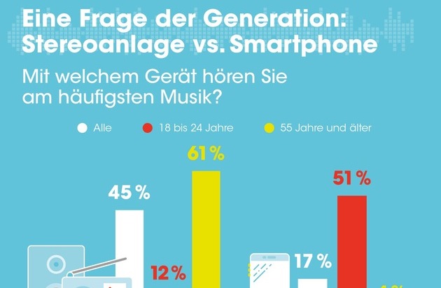 - Stereo-Anlage schlägt Smartphone insgesamt beim Gerät der Wahl