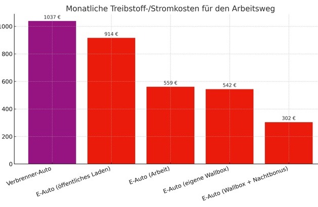 - Auf der häufigsten deutschen Pendeldistanz spart das E-Auto bis zu 735 Euro pro Jahr