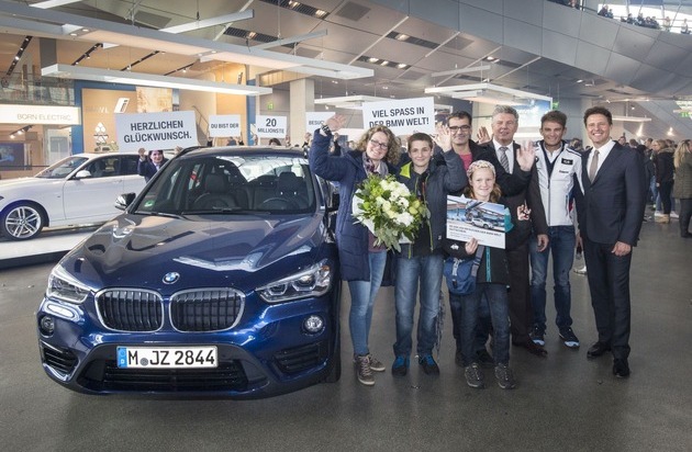 20.000.000 BMW Welt Besucher / Ein Jahr lang Fahrfreude mit einem BMW X1 für überraschte Jubiläumsgäste