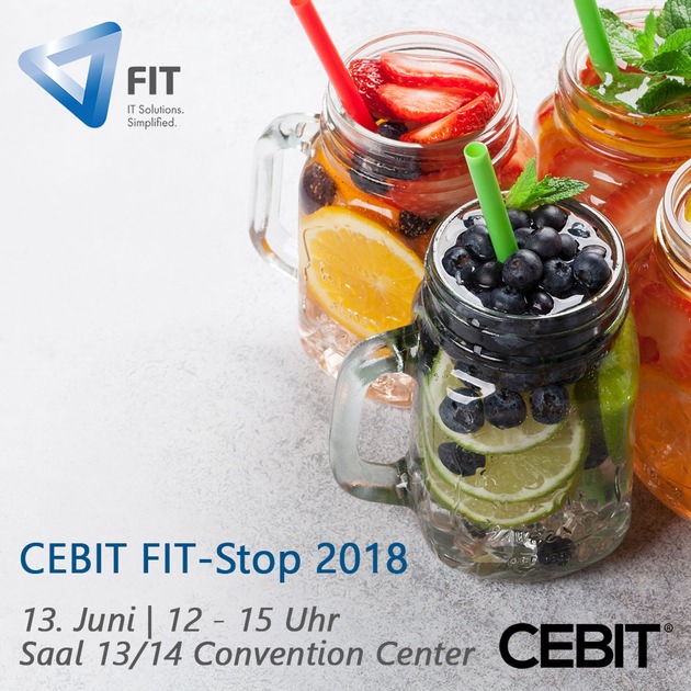 Der IT-Dienstleister Freudenberg IT (FIT) lädt auf der diesjährigen CEBIT am dritten Messetag, Mittwoch, den 13. Juni von 12 Uhr bis 15 Uhr zum mittäglichen FIT-Stop ein. Zu diesem gemeinsamen Lunch in gemütlicher Atmosphäre serviert das Unternehmen in Saal 13/14 im Convention Center als Stärkung einen leckeren FITnessteller mit Salat, Currywurst und Pommes; als FITnessgetränk werden Smoothies gereicht. Alle Teilnehmer haben dort Gelegenheit zum entspannten Networking und zum Austausch mit den Experten der FIT über die aktuellen IT-Megatrends. Zudem informieren die Spezialisten zu den Schwerpunkten simplyCloud, simplyIoT, simplySecure, simplyAMS4SAP, simplyS/4HANA, simplyDigital Work, simplyService und simplySustainable.