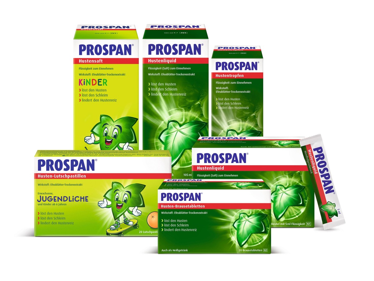 Prospan® Hustenliquid, Flüssigkeit zum Einnehmen. Wirkstoff: Efeublätter-Trockenextrakt. Zur Besserung der Beschwerden bei chronisch-entzündlichen Bronchialerkrankungen; akute Entzündung der Atemwege mit der Begleiterscheinung Husten. Enthält Levomenthol, Sorbitol und Natriumsulfit. 5 ml enthalten 2,55 mg Alkohol (Ethanol als Bestandteil des Aromas), entsprechend 0,05 % Alkohol (w/v).