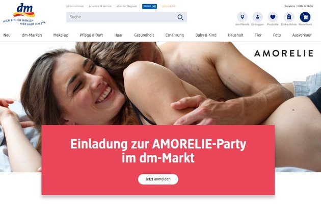 Ein noch nie dagewesenes Shopping-Erlebnis im Drogerie-Handel - nur für Frauen. Von Juni bis Ende August haben dm Kundinnen in ausgewählten Filialen die Möglichkeit, nach Ladenschluss und in netter Atmosphäre in den Genuss einer AMORELIE Toyparty zu kommen. Die "AMORELIE-Party bei dm" findet ab Juni in 186 dm Filialen in Deutschland statt.