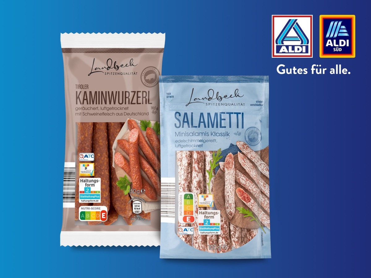 - LANDBECK Bergsalami, 300 Gramm für nur 2,99 Euro statt 3,39 Euro (-40 Cent), nur bei ALDI SÜD