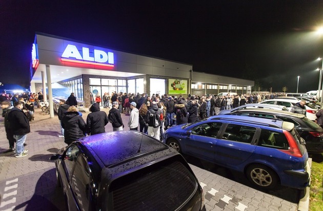 Knallerverkauf um Mitternacht: Großer Andrang bei ALDI Nord in Berlin