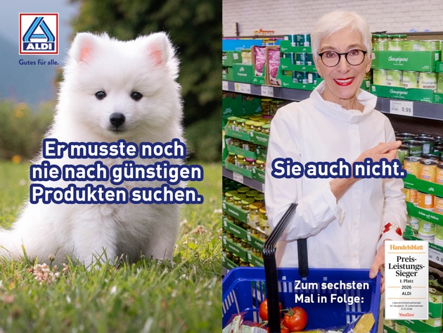 [1] Die Marke ALDI steht nach Ansicht der von YouGov befragten Verbraucher für das beste Preis-Leistungs-Verhältnis in der Kategorie Lebensmitteleinzelhandel. Mehr Informationen auf www.handelsblatt.com/preis-leistung