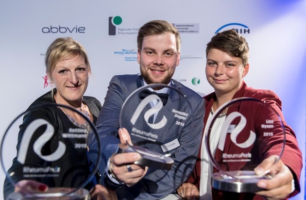 Große Auszeichnung am 12. Oktober - dem Welt-Rheuma-Tag - für drei Berufstätige mit Rheuma: Bei einer feierlichen Preisverleihung in Berlin erhielten Bettina Wittmann, Lisa Nysen und Benedikt Ziegler den RheumaPreis 2015 für ihren beispielhaften Weg, mit ihrer Erkrankung im Arbeitsleben umzugehen und ihre Arbeitsfähigkeit zu erhalten. Mit ihnen wurden ihre Arbeitgeber von der Eisengießerei Dossmann GmbH und der Spedition Meyer logistics GmbH gewürdigt, die besonderes Engagement für Arbeitnehmer mit Rheuma bewiesen hatten.