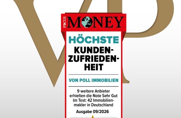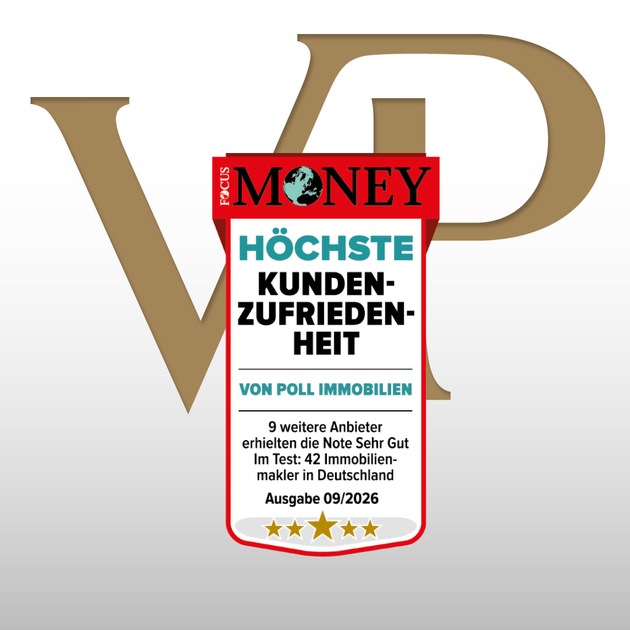 - VON POLL IMMOBILIEN wird 2026 bereits zum siebten Mal in Folge von Focus Money mit dem Gütesiegel „Höchste Kundenzufriedenheit“ ausgezeichnet