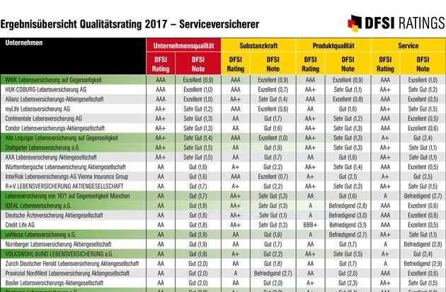 DFSI Qualitätsrating: Die besten Lebensversicherer 2017