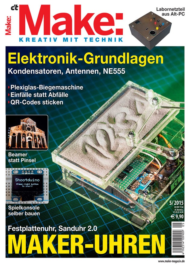Lassen sich Geräte gar nicht mehr reparieren, eignen sie sich durchaus als Material für spannende Upcycling-Projekte. So porträtiert die Make-Redaktion im aktuellen Heft nicht nur den Extrem-Recycler Christian Kuhtz, sondern zeigt auch, wie man aus Festplatten eines ausgemusterten PCs eine stylische Uhr fürs Wohnzimmer bauen kann. Das Besondere daran sind die virtuellen Zeiger aus farbigem Licht. "Wer ein wenig Geschick mitbringt, kann an einem trüben Herbstwochenende seine persönliche Maker-Uhr selbst herstellen. Dank Arduino-Steuerung ist der Bastelaufwand auch überschaubar", erläutert Daniel Bachfeld.