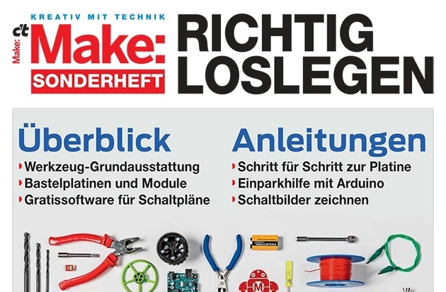 Nicht jeder ist Experte auf allen Gebieten des Selbermachens, manch einer kann gut löten, sucht aber immer noch den leichten Einstieg ins Programmieren - oder genau andersrum. Manch einer kann mit CAD-Programmen perfekt Platinen layouten, tut sich mit 3D-Druck aber schwer. "Das wollen wir mit dem Make-Sonderheft 'Richtig loslegen' ändern", sagt Bachfeld. "Ich bin mir sicher, dass alle, die gern basteln oder tüfteln, damit ihr Wissen oder ihre Fähigkeiten auf vielen Gebieten erweitern und für eigene Projekte einsetzen können."