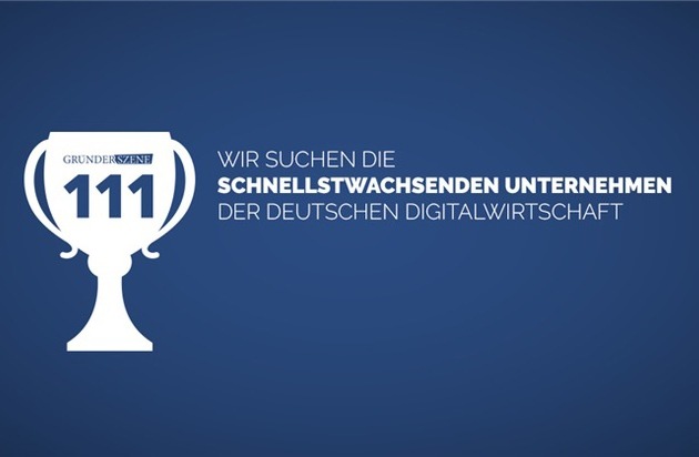 Gründerszene ist auf der Suche nach den 111 schnellstwachsenden Digitalunternehmen Deutschlands. Mit dem Wettbewerb Gründerszene 111 will das führende Onlinemagazin der Startup-Szene und Digitalwirtschaft ein offizielles und valides Wachstums-Ranking erstellen, das es so noch nicht gegeben hat. Unternehmen können sich vom 01.09.2015 bis zum 30.09.2015 online unter www.gruenderszene.de/gs-111 bewerben. Die 111 wachstumsstärksten Unternehmen werden im Anschluss umfangreich in der deutschen Medienlandschaft platziert und erhalten somit starke Sichtbarkeit und Branding.