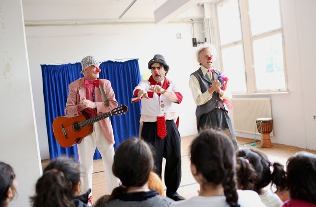 Mit buntem Kostüm, roter Nase, Jonglier-Kunst und lauten Trommeln - so begeisterte der Opernsänger, der sonst eher für klassische Töne bekannt ist. Die Rolle des Clowns ist Villazón nicht fremd. Bereits als junger Mann ist er als solcher aufgetreten und seither der Clownfigur treu geblieben. "Ich liebe es als Clown aufzutreten. Es erfüllt mich mit großer Freude. Denn die Menschen haben nach einem Clownbesuch - egal ob im Krankenhaus oder auch hier im Flüchtlingsheim - einen anderen Blick auf die Welt. Mit diesem Moment von Licht und Farbe, den die Clowns bringen, geht es den Menschen besser und es fällt ihnen ein bisschen leichter, Schwierigkeiten zu bewältigen", so Villazón, der sich als offizieller Botschafter für ROTE NASEN engagiert.