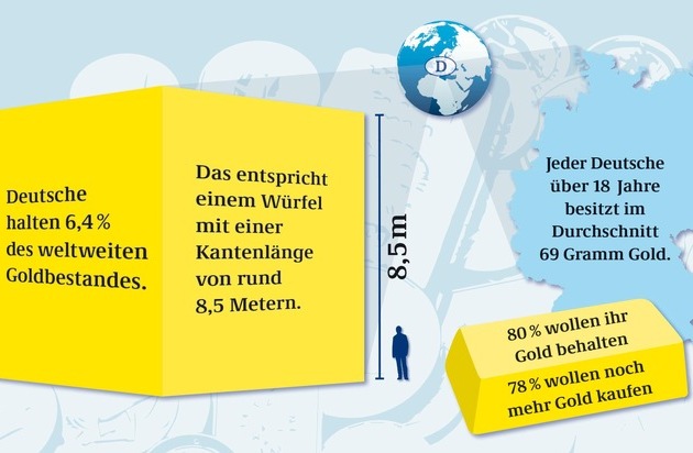 Metern und einem Gegenwert von 375 Milliarden Euro. - 38 Prozent der Deutschen (26 Millionen) besitzen Gold in Barren-